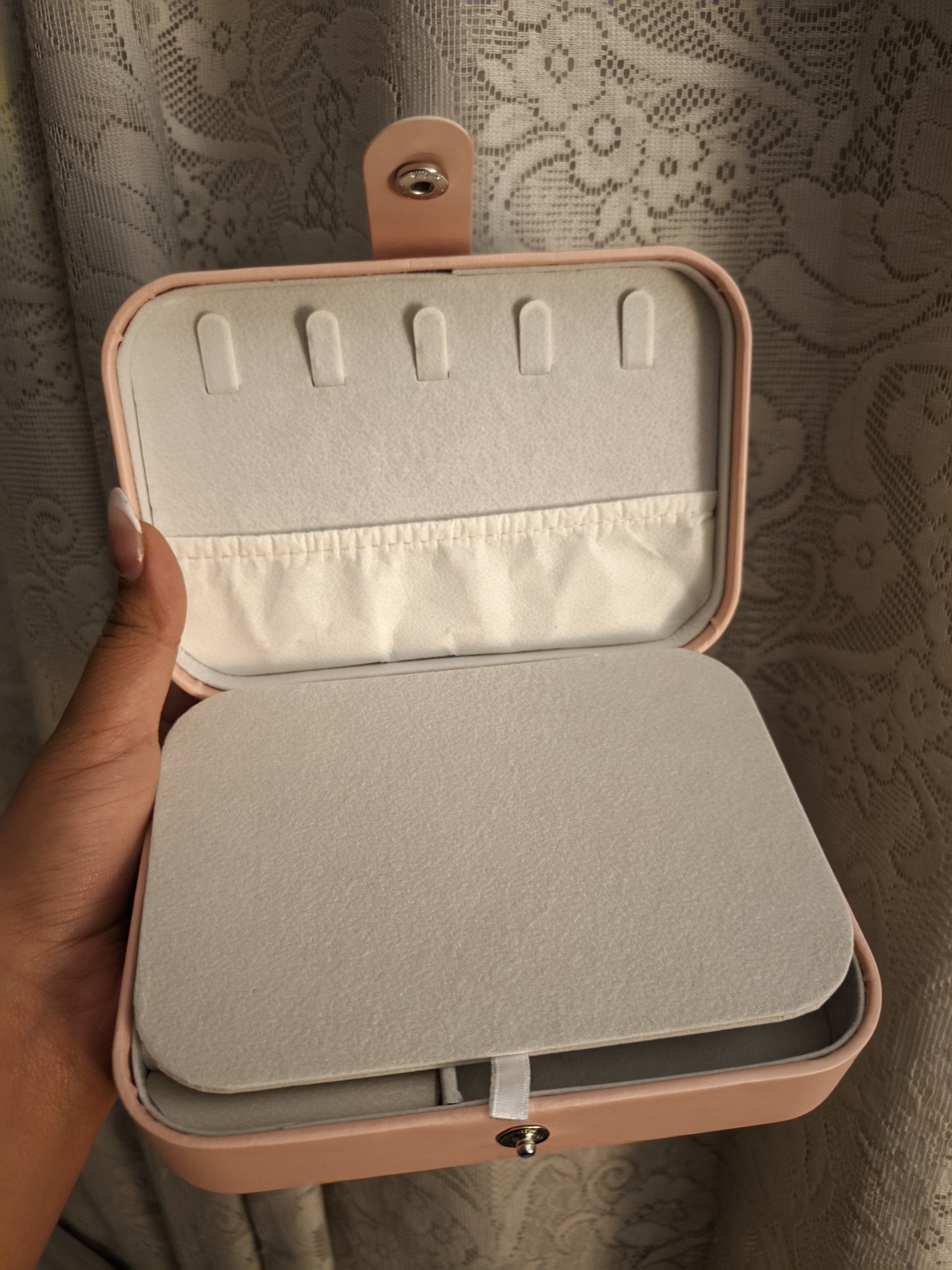 The Moka Jewellery Organizer is a compact, travel-friendly box designed to store your rings, earrings, chains, and bracelets — all in one place. With a soft suede interior, secure compartments, and a luxe blush pink exterior featuring the Moka logo in gold, this organizer keeps your jewellery sorted and scratch-free whether you're at home or on-the-go.